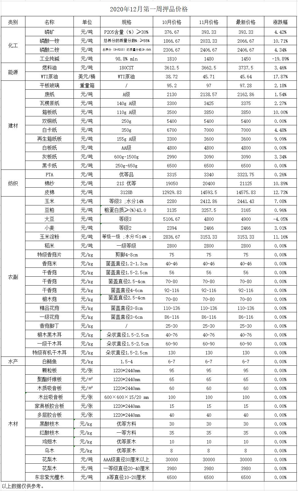 分类: 价格监测2020年12月8日分享此文章文章导航历史的文章历史的文章:2020年12月份第二周价格监测未来的文章未来的文章:2020年11月份第四周价格监测近期要闻2025年11月第三周押品价格监测2025年11月24日2025年11月第二周押品价格监测2025年11月14日2025年11月第一周押品价格监测2025年11月14日2025年10月第五周押品价格监测2025年10月31日2025年10月第四周押品价格监测2025年10月24日2025年10月第三周押品价格监测2025年10月24日
