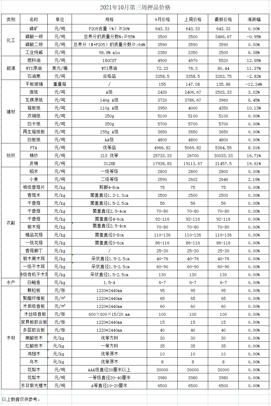 分类: 价格监测2021年11月10日分享此文章文章导航历史的文章历史的文章:2021年10月份第四周价格监测未来的文章未来的文章:2021年10月份第二周价格监测近期要闻2025年11月第三周押品价格监测2025年11月24日2025年11月第二周押品价格监测2025年11月14日2025年11月第一周押品价格监测2025年11月14日2025年10月第五周押品价格监测2025年10月31日2025年10月第四周押品价格监测2025年10月24日2025年10月第三周押品价格监测2025年10月24日