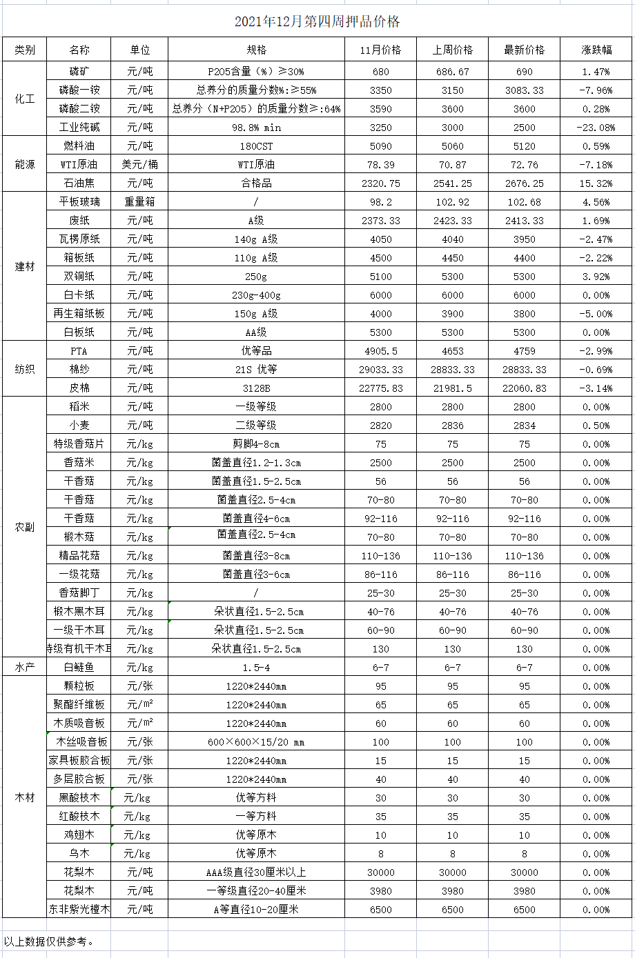 分类: 价格监测2021年12月27日分享此文章文章导航历史的文章历史的文章:2021年12月份第五周价格监测未来的文章未来的文章:2021年12月份第三周价格监测近期要闻2025年11月第三周押品价格监测2025年11月24日2025年11月第二周押品价格监测2025年11月14日2025年11月第一周押品价格监测2025年11月14日2025年10月第五周押品价格监测2025年10月31日2025年10月第四周押品价格监测2025年10月24日2025年10月第三周押品价格监测2025年10月24日