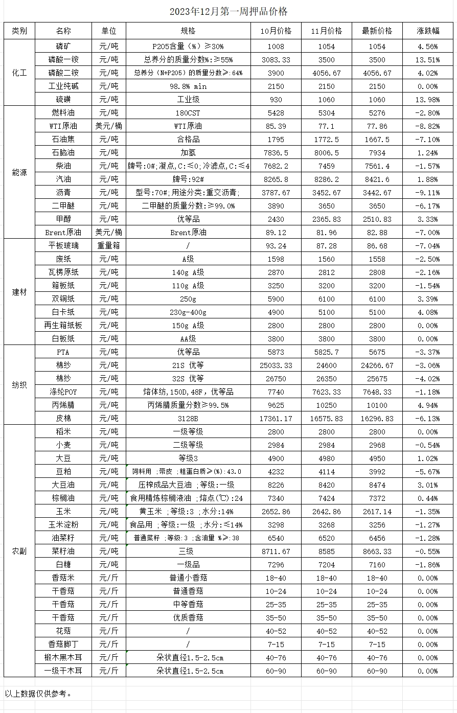 分类: 价格监测2023年12月8日分享此文章文章导航历史的文章历史的文章:2023年12月份第二周价格监测未来的文章未来的文章:2023年11月份第四周价格监测近期要闻2025年11月第三周押品价格监测2025年11月24日2025年11月第二周押品价格监测2025年11月14日2025年11月第一周押品价格监测2025年11月14日2025年10月第五周押品价格监测2025年10月31日2025年10月第四周押品价格监测2025年10月24日2025年10月第三周押品价格监测2025年10月24日