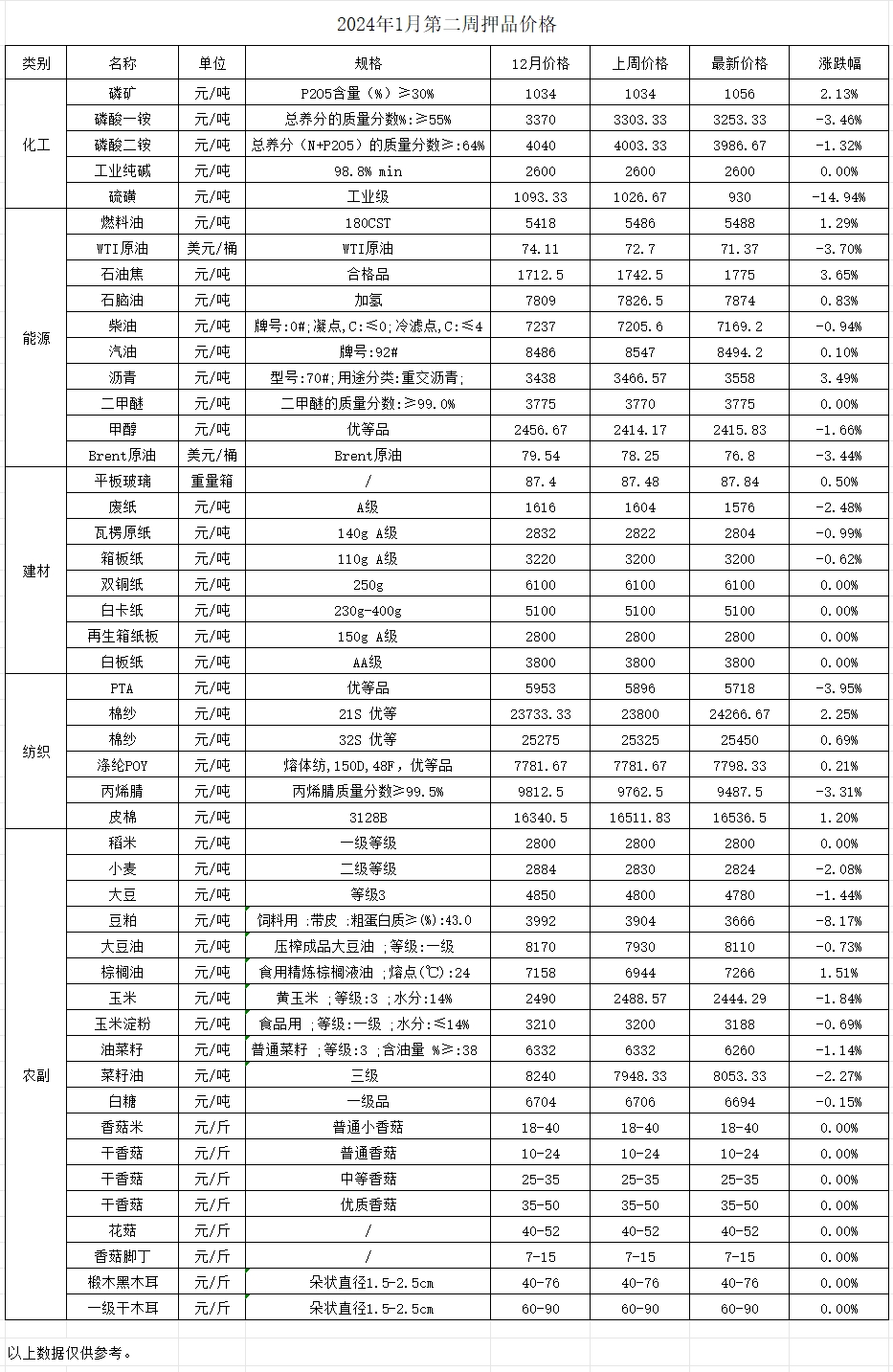 分类: 价格监测2024年1月12日分享此文章文章导航历史的文章历史的文章:2024年1月份第三周价格监测未来的文章未来的文章:2024年1月份第一周价格监测近期要闻2025年11月第三周押品价格监测2025年11月24日2025年11月第二周押品价格监测2025年11月14日2025年11月第一周押品价格监测2025年11月14日2025年10月第五周押品价格监测2025年10月31日2025年10月第四周押品价格监测2025年10月24日2025年10月第三周押品价格监测2025年10月24日