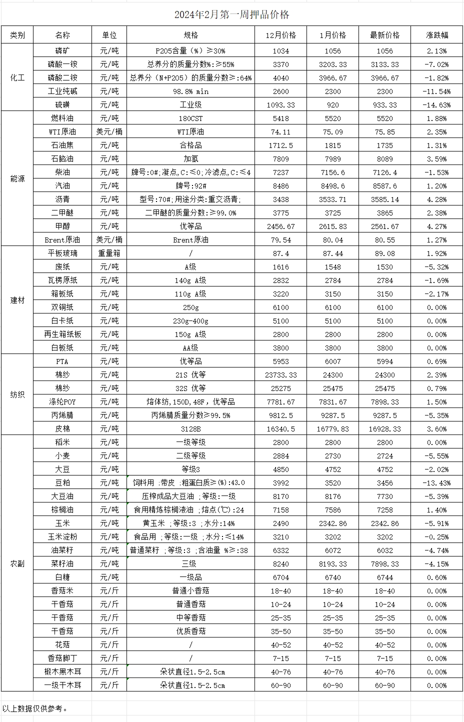 分类: 价格监测2024年2月2日分享此文章文章导航历史的文章历史的文章:2024年2月份第四周价格监测未来的文章未来的文章:2024年1月份第四周价格监测近期要闻2025年11月第三周押品价格监测2025年11月24日2025年11月第二周押品价格监测2025年11月14日2025年11月第一周押品价格监测2025年11月14日2025年10月第五周押品价格监测2025年10月31日2025年10月第四周押品价格监测2025年10月24日2025年10月第三周押品价格监测2025年10月24日
