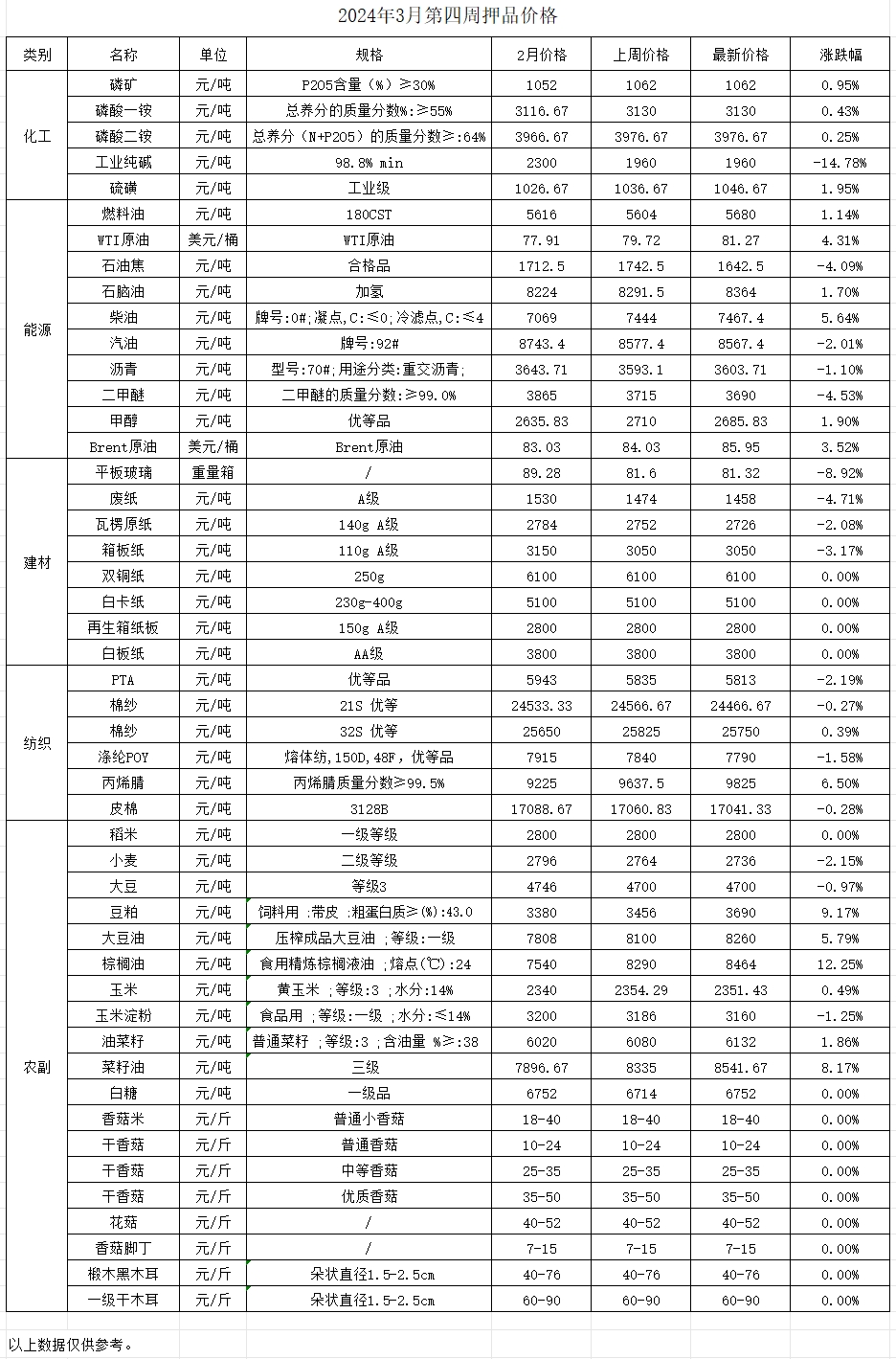 分类: 价格监测2024年3月25日分享此文章文章导航历史的文章历史的文章:2024年3月份第五周价格监测未来的文章未来的文章:2024年3月份第三周价格监测近期要闻2025年11月第三周押品价格监测2025年11月24日2025年11月第二周押品价格监测2025年11月14日2025年11月第一周押品价格监测2025年11月14日2025年10月第五周押品价格监测2025年10月31日2025年10月第四周押品价格监测2025年10月24日2025年10月第三周押品价格监测2025年10月24日