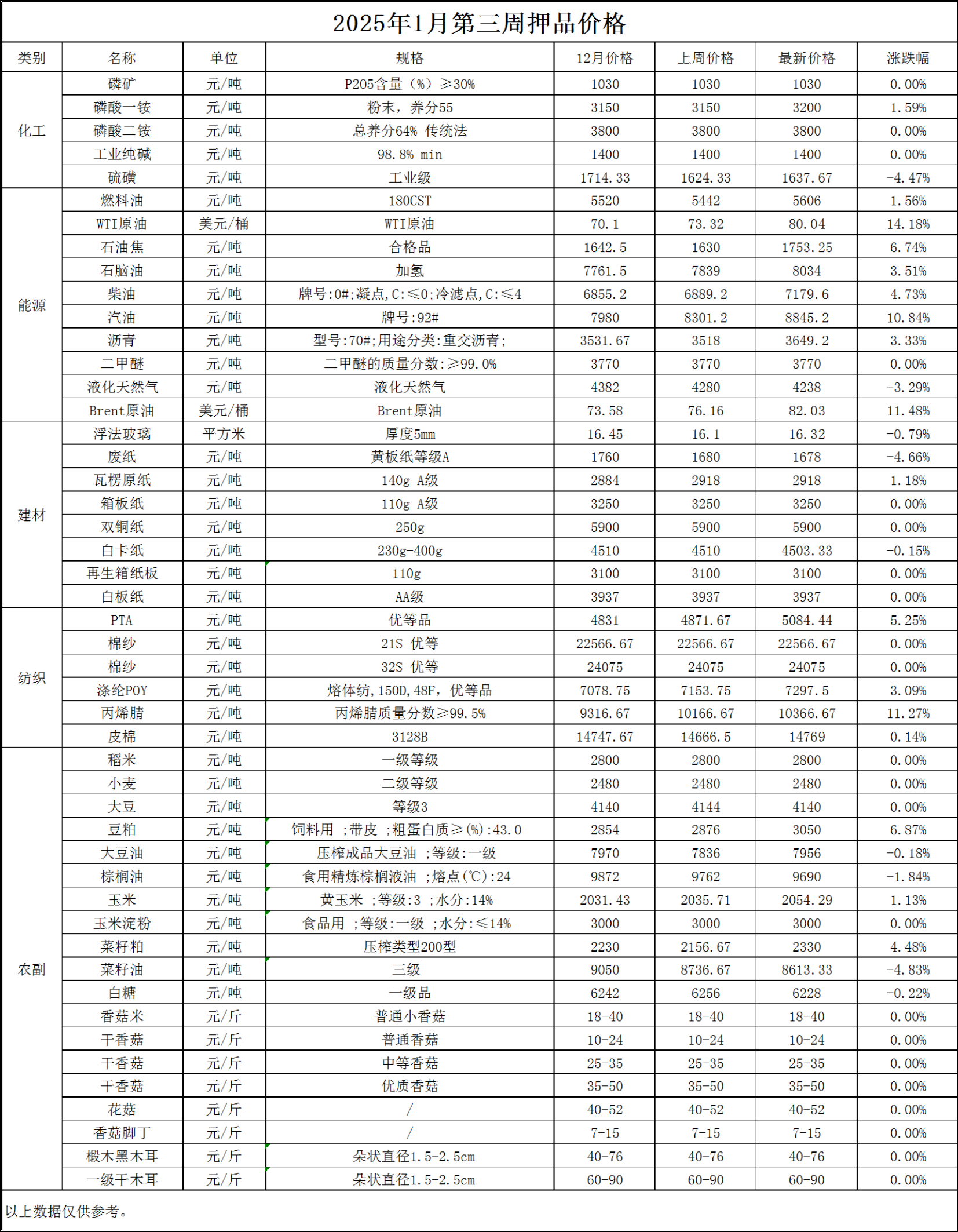 分类: 价格监测2025年1月17日分享此文章文章导航历史的文章历史的文章:2025年2月第三周押品价格监测未来的文章未来的文章:2025年1月第二周押品价格监测近期要闻2025年11月第三周押品价格监测2025年11月24日2025年11月第二周押品价格监测2025年11月14日2025年11月第一周押品价格监测2025年11月14日2025年10月第五周押品价格监测2025年10月31日2025年10月第四周押品价格监测2025年10月24日2025年10月第三周押品价格监测2025年10月24日