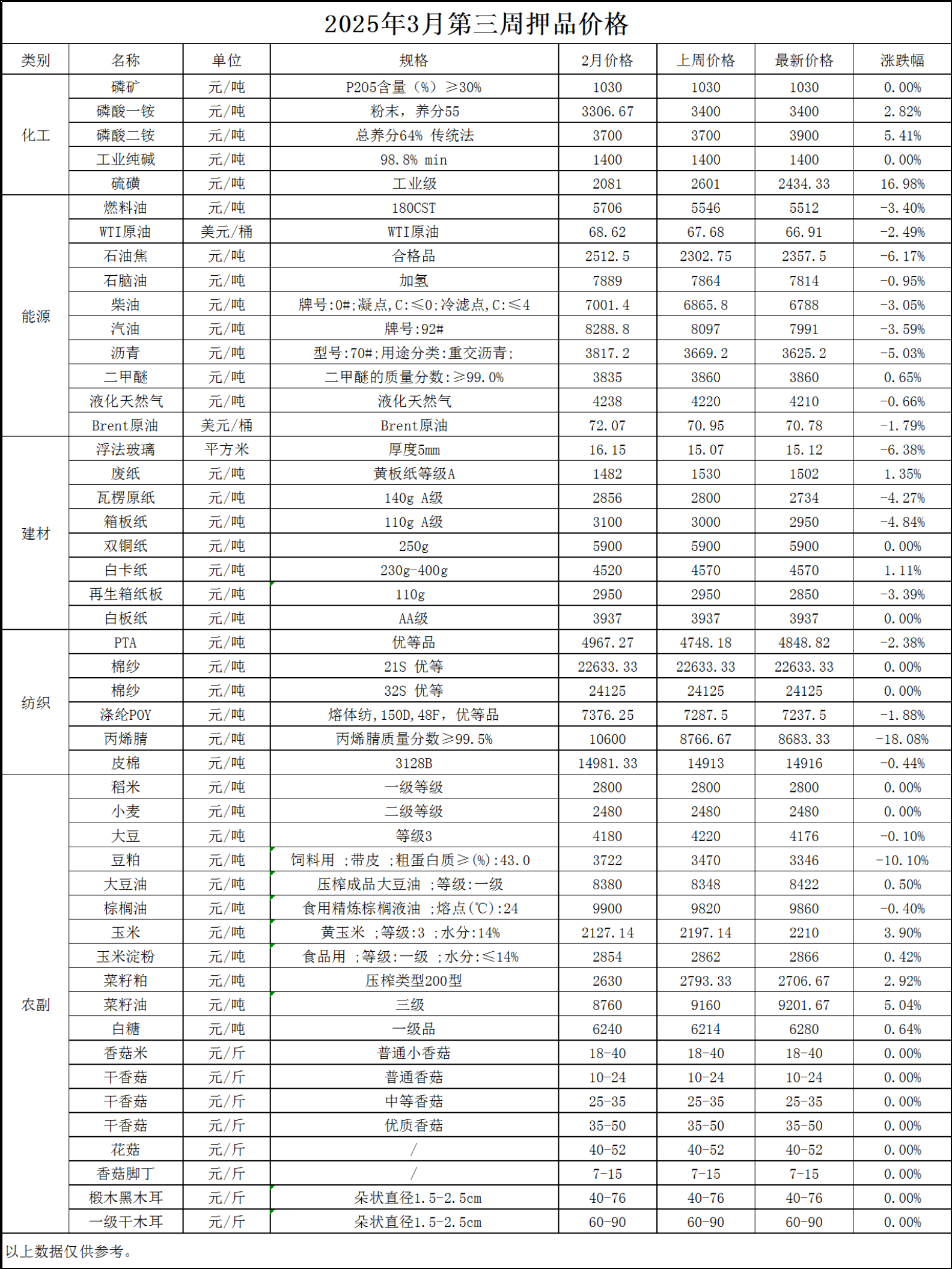 分类: 价格监测2025年3月24日分享此文章文章导航历史的文章历史的文章:2025年3月第四周押品价格监测未来的文章未来的文章:2025年3月第二周押品价格监测近期要闻2025年11月第三周押品价格监测2025年11月24日2025年11月第二周押品价格监测2025年11月14日2025年11月第一周押品价格监测2025年11月14日2025年10月第五周押品价格监测2025年10月31日2025年10月第四周押品价格监测2025年10月24日2025年10月第三周押品价格监测2025年10月24日