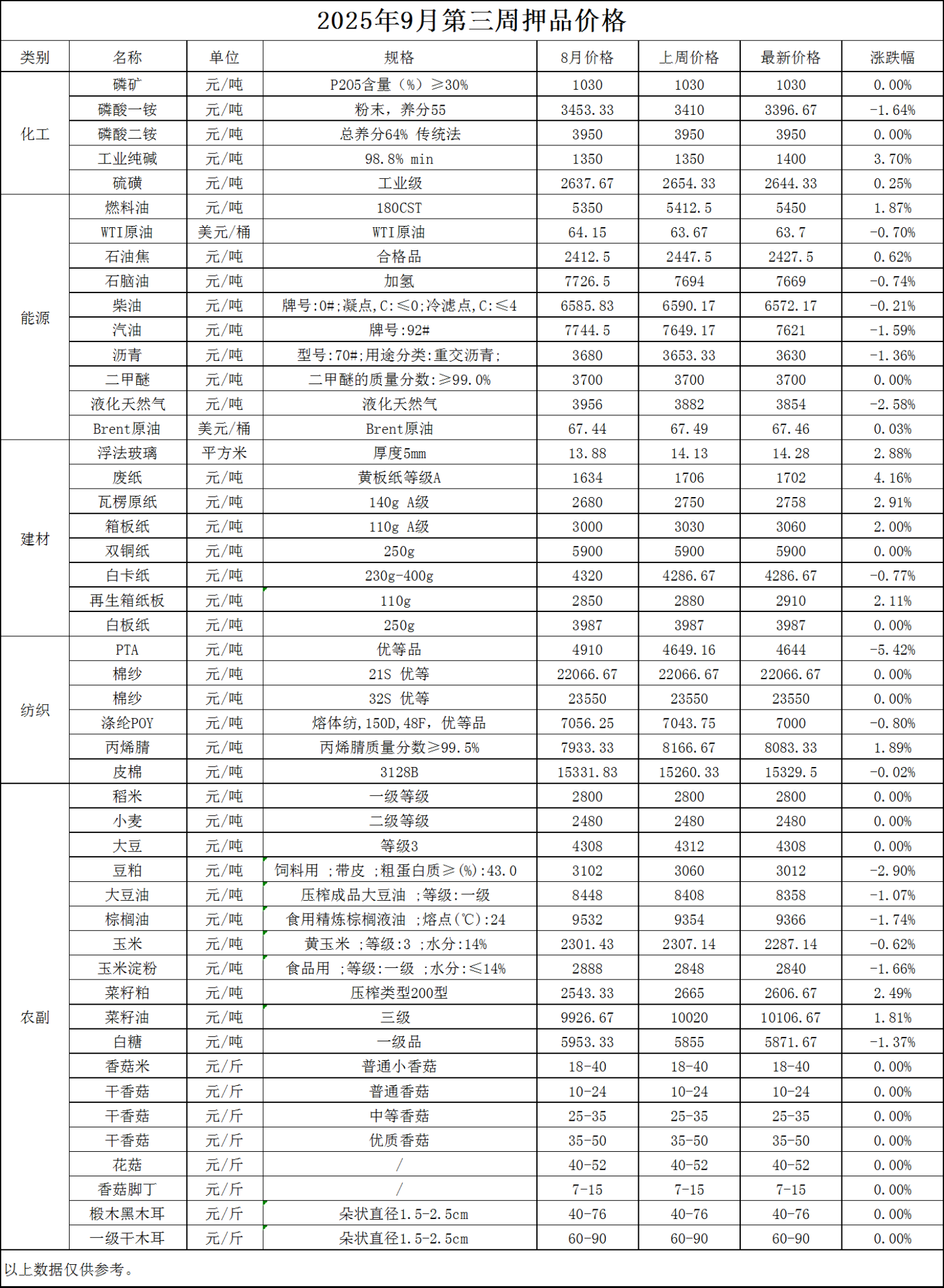 分类: 价格监测2025年10月17日分享此文章文章导航历史的文章历史的文章:2025年10月第一周押品价格监测未来的文章未来的文章:2025年9月第二周押品价格监测近期要闻2025年11月第三周押品价格监测2025年11月24日2025年11月第二周押品价格监测2025年11月14日2025年11月第一周押品价格监测2025年11月14日2025年10月第五周押品价格监测2025年10月31日2025年10月第四周押品价格监测2025年10月24日2025年10月第三周押品价格监测2025年10月24日