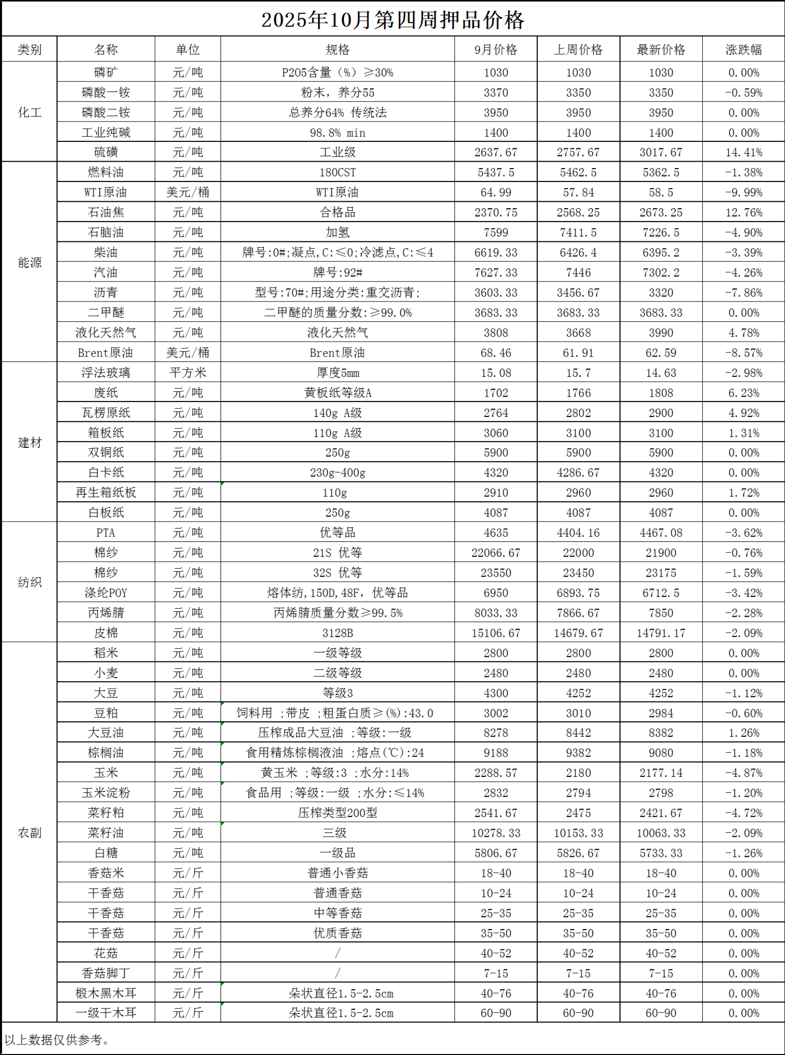 分类: 价格监测2025年10月24日分享此文章文章导航历史的文章历史的文章:2025年10月第五周押品价格监测未来的文章未来的文章:2025年10月第三周押品价格监测近期要闻2025年10月第五周押品价格监测2025年10月31日2025年10月第三周押品价格监测2025年10月24日2025年10月第二周押品价格监测2025年10月17日2025年10月第一周押品价格监测2025年10月17日2025年9月第三周押品价格监测2025年10月17日2025年9月第二周押品价格监测2025年10月17日